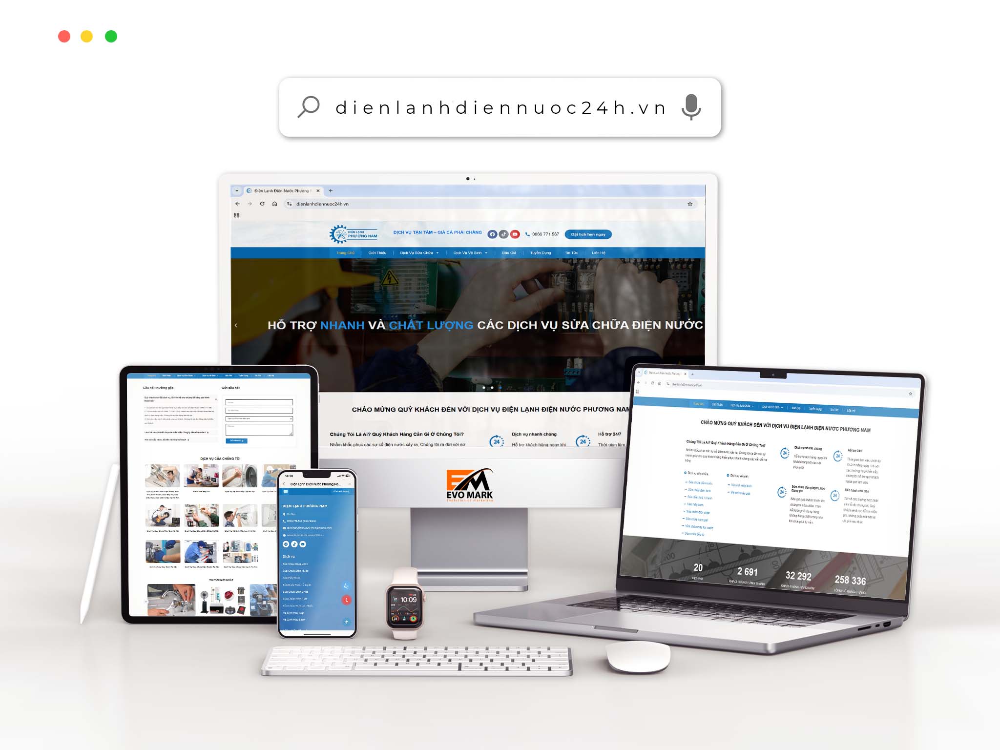 Với kinh nghiệm triển khai nhiều dự án thiết kế website trong lĩnh vực dịch vụ kỹ thuật, sửa chữa, điện lạnh, cơ điện, EVO MARK mang đến giải pháp website: