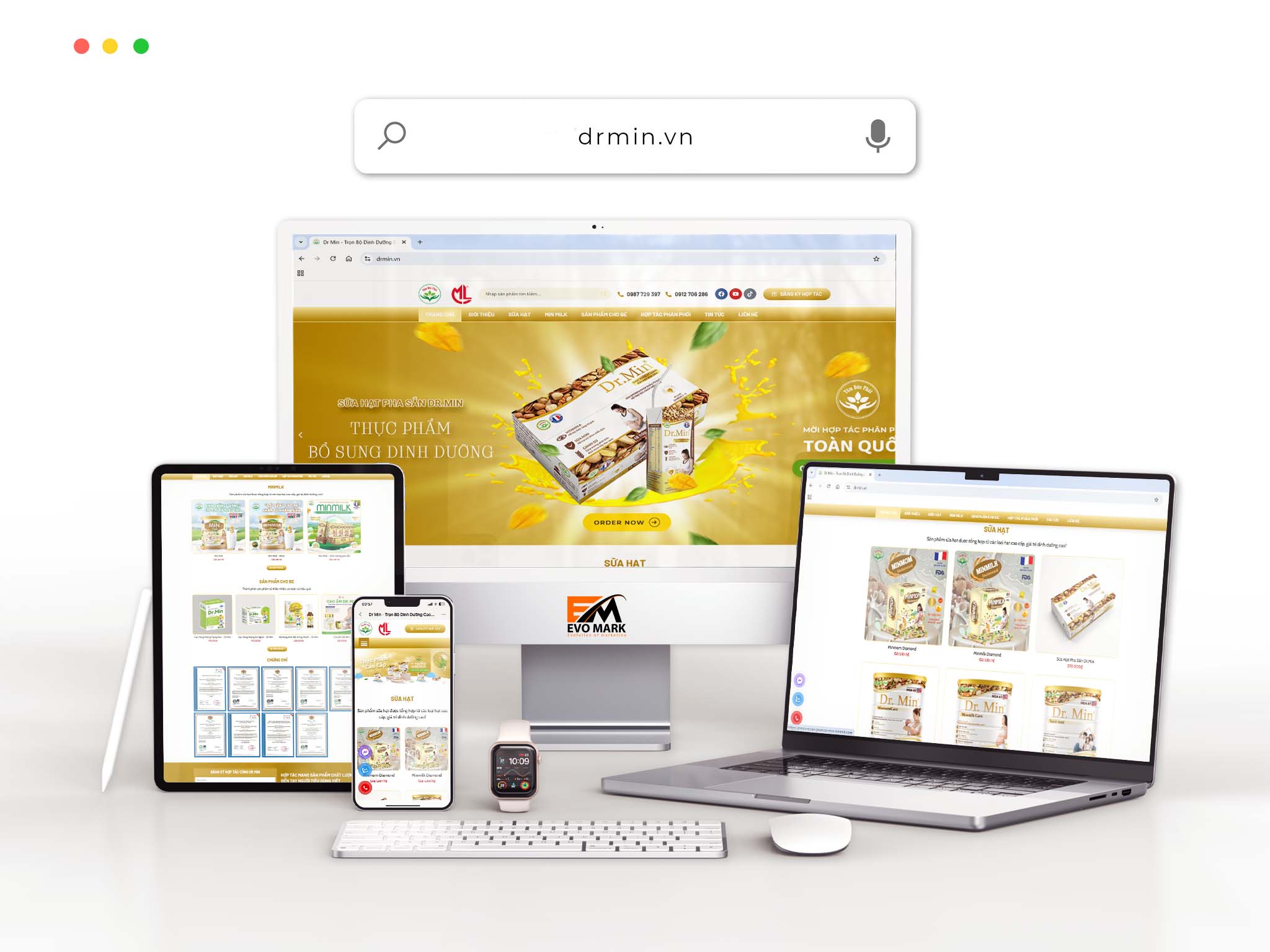 Với mục tiêu mở rộng thị trường online và chuyên nghiệp hóa hình ảnh thương hiệu, Sữa DrMin đã tin tưởng hợp tác cùng EVO MARK để thiết kế và phát triển website bán hàng hiện đại, chuẩn SEO và tối ưu trải nghiệm người dùng.