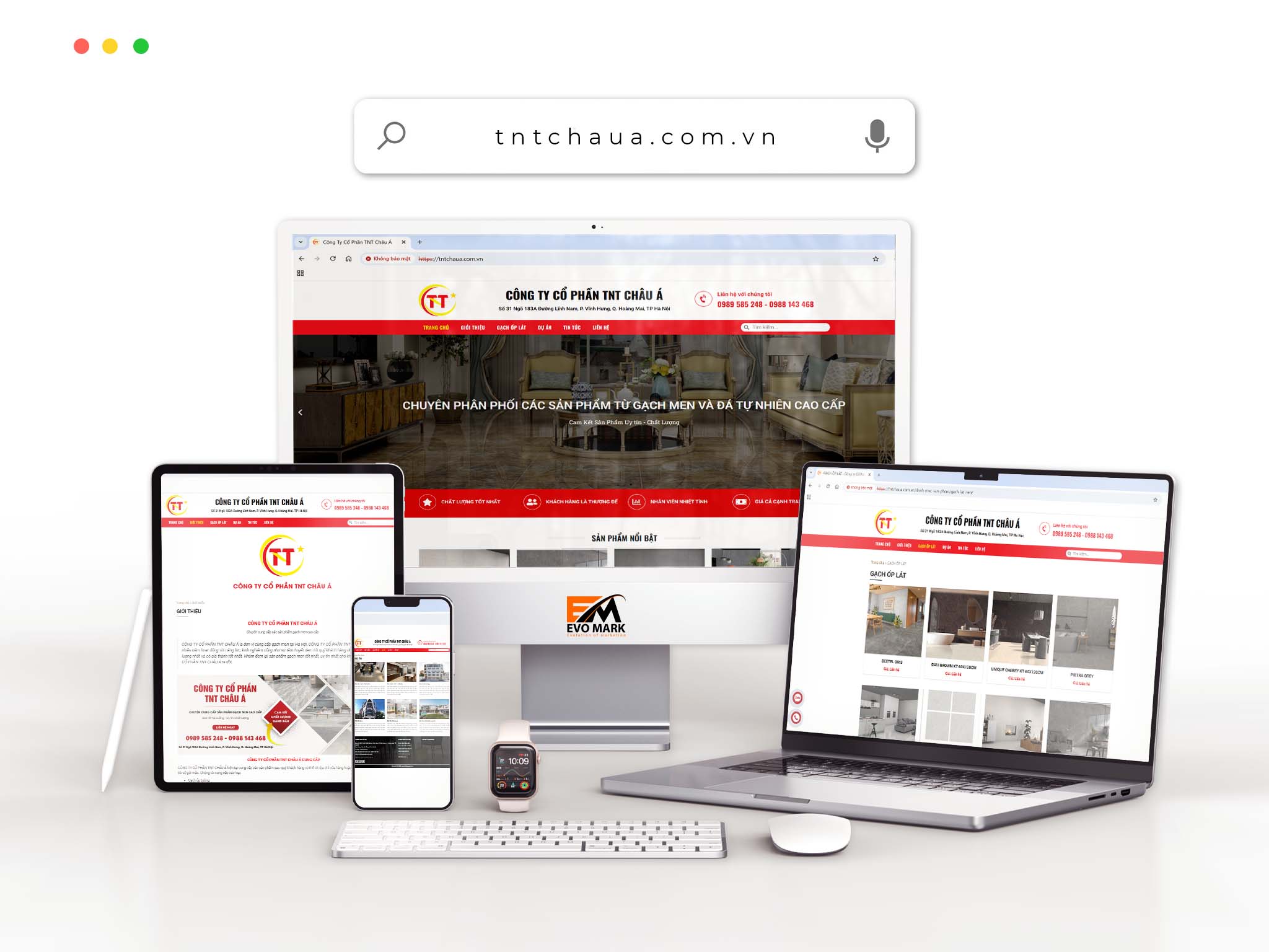 Với gần 10 năm kinh nghiệm trong lĩnh vực Digital Marketing và thiết kế website chuyên nghiệp, EVO MARK tự hào là đơn vị thực hiện dự án thiết kế website giới thiệu sản phẩm gạch men & đá tự nhiên cho TNT Châu Á – một thương hiệu uy tín trong ngành vật liệu xây dựng và nội ngoại thất cao cấp tại Việt Nam.