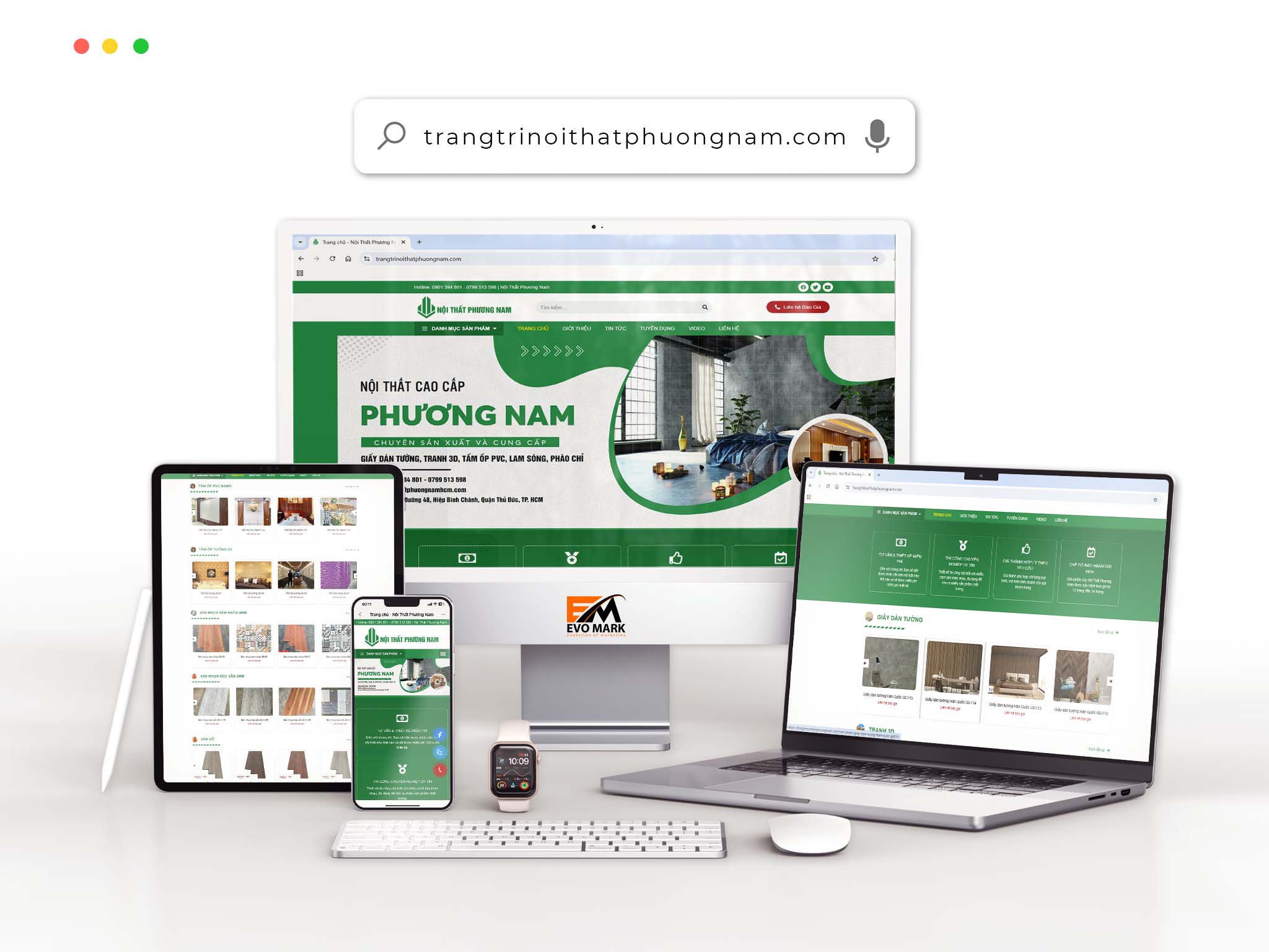 Với định hướng phát triển mạnh mẽ trên nền tảng số, Phương Nam đã hợp tác cùng EVO MARK triển khai dự án thiết kế website thương hiệu – nơi khách hàng có thể tham khảo sản phẩm, phong cách thiết kế, bảng giá và đặt dịch vụ trực tuyến một cách tiện lợi.