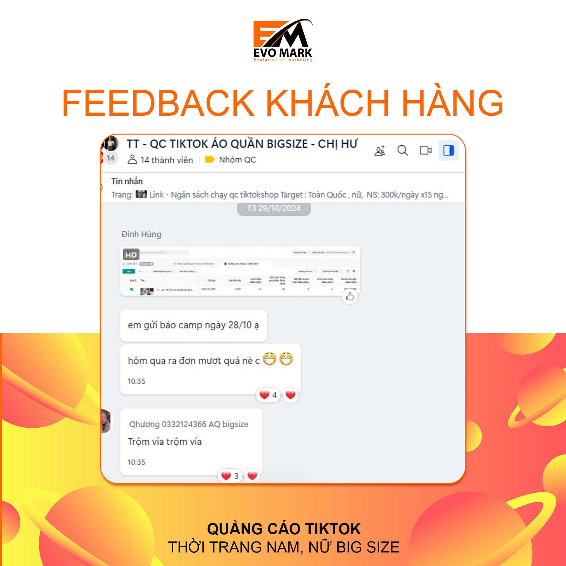 Tùy vào mục tiêu chiến dịch, bạn có thể chọn In-Feed Ads, Brand Takeover, Hashtag Challenge, hay Branded Effects. Đội ngũ chuyên gia của Evo Mark sẽ phân tích nhu cầu và đề xuất giải pháp phù hợp, giúp tối đa hóa hiệu quả tiếp thị của bạn.