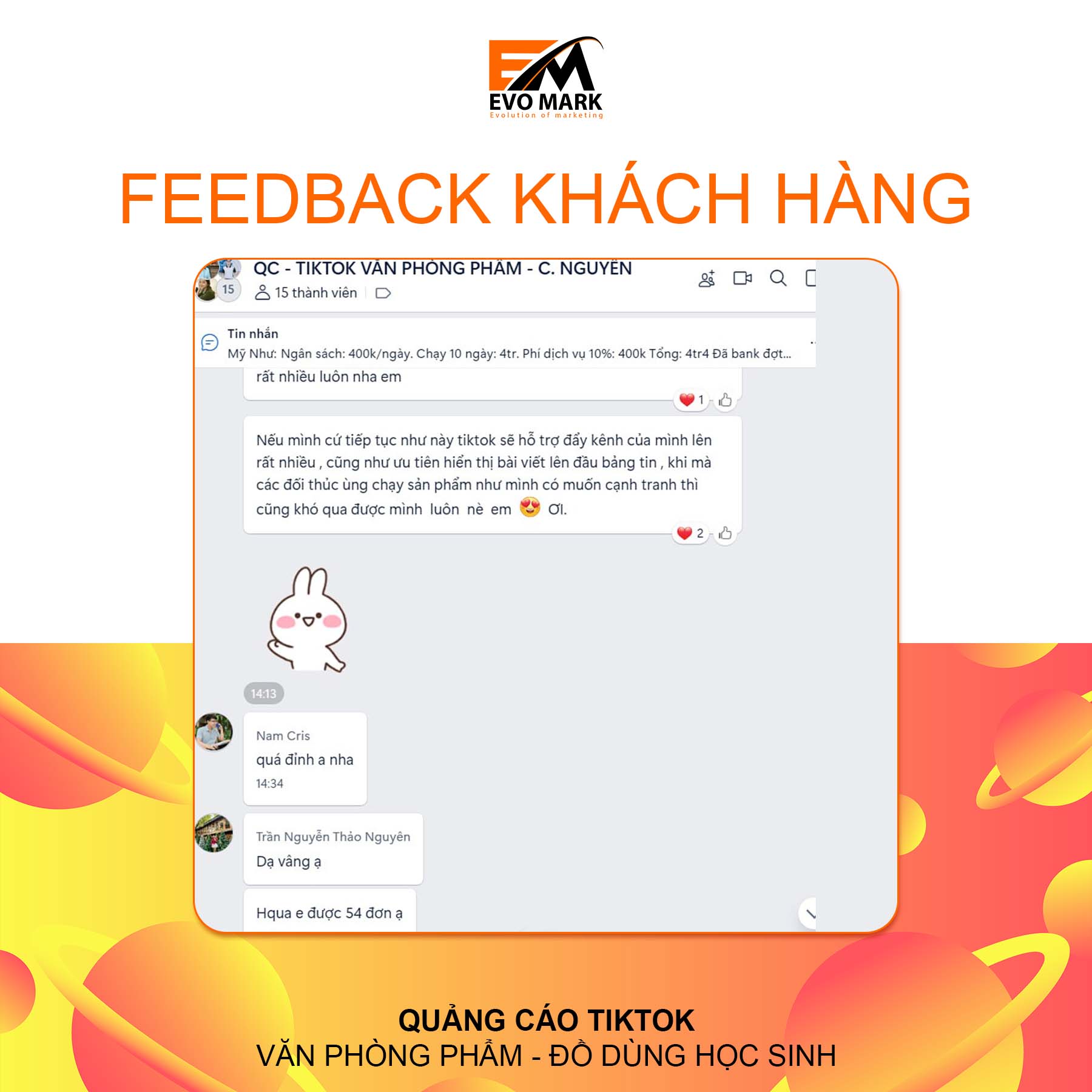 Chi phí quảng cáo TikTok được tính dựa trên các yếu tố như lượt xem, lượt nhấp chuột, và phạm vi tiếp cận. Bạn có thể chọn giữa các hình thức trả phí theo lượt hiển thị (CPM) hoặc tương tác (CPC). Evo Mark sẽ tối ưu hóa chiến dịch để đảm bảo chi phí hiệu quả nhất.