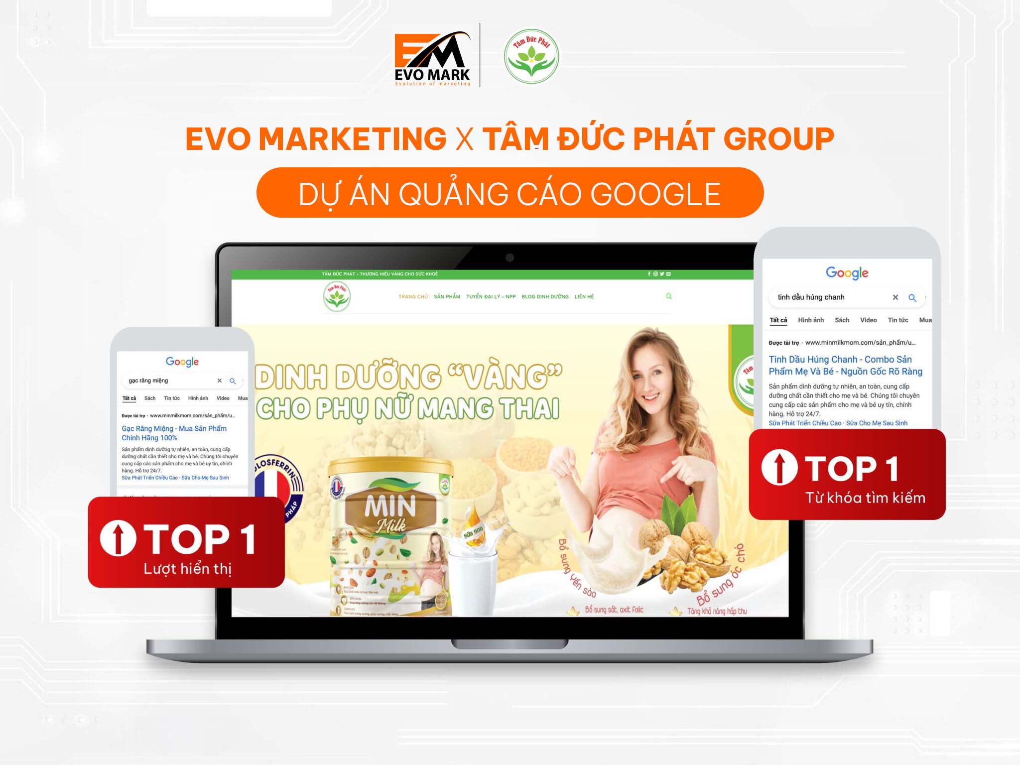 Quảng cáo Google không chỉ giúp doanh nghiệp tiếp cận khách hàng tiềm năng mà còn gia tăng doanh số một cách bền vững. Tâm Đức Phát Group đã thành công với chiến lược Google Ads, tối ưu chi phí nhưng vẫn đạt hiệu quả cao. Nếu bạn cũng muốn bứt phá doanh thu với quảng cáo Google, Evo Mark sẵn sàng đồng hành cùng bạn!