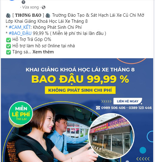 Chiến lược Facebook Ads của Evo Mark đã giúp Trung Tâm Đào Tạo Lái Xe Củ Chi tăng trưởng mạnh mẽ về số lượng học viên, đồng thời nâng cao uy tín thương hiệu trong khu vực.Bạn cũng muốn có một chiến dịch Facebook Ads hiệu quả như vậy? Liên hệ ngay Evo Mark để nhận tư vấn chiến lược phù hợp cho doanh nghiệp của bạn!
