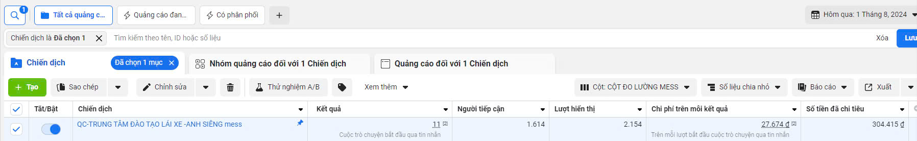 III. Kết quả chiến dịch Facebook Ads mang lại cho trung tâm lái xe Củ Chi